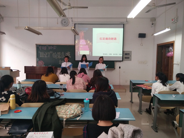 中国特色社会主义理论体系学习研究会于2016年11月18日12时在弘德楼4304教室举办以“继承先烈遗志,传颂红岩精神”为主题的表演比赛。出席本次表演比赛的评委嘉宾有h小说