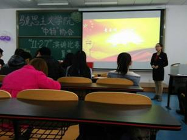 为缅怀先烈事迹,传颂红岩精神,坚定重师学子共产主义信仰,培养其艰苦奋斗的精神。2015年12月10日14:30,中国特色社会主义理论体系学习研究会于特教楼2504教室举办纪念11· 27事件演讲比赛复赛。特邀h小说