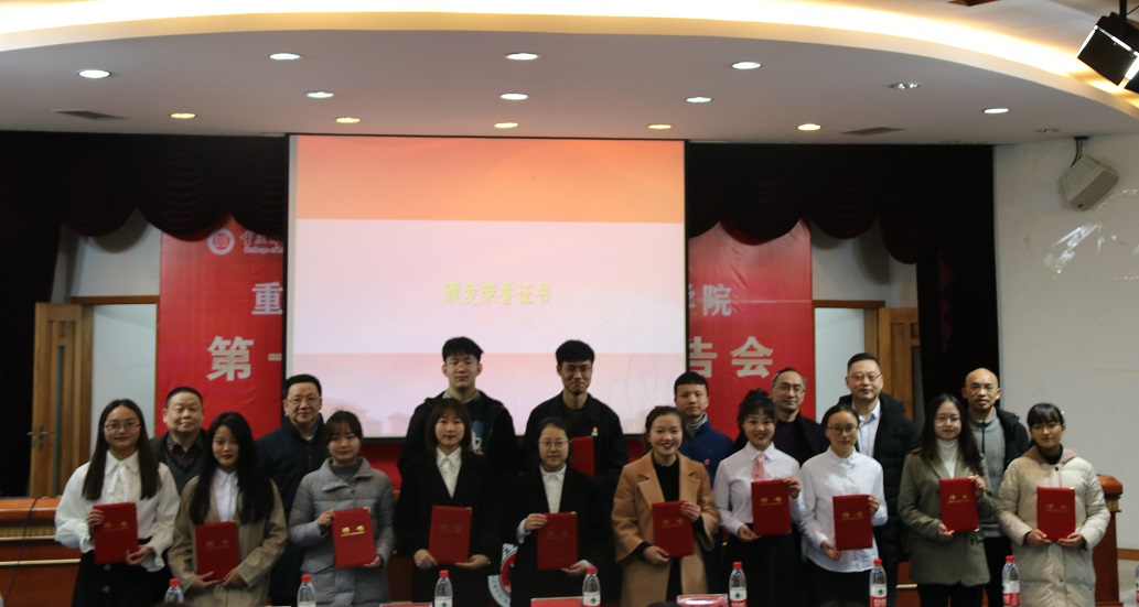 党委书记刘军、院长陈洪,党委副书记方敏、副院长况明安,教师代表李剑为报告团成员颁发荣誉证书。