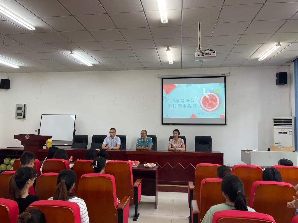 2018级考研就业留校学生慰问活动在汇贤楼106教室展开,学院党委书记刘军、党委副书记方敏、2018级辅导员刘洪出席本次活动,2018级留校同学参加。