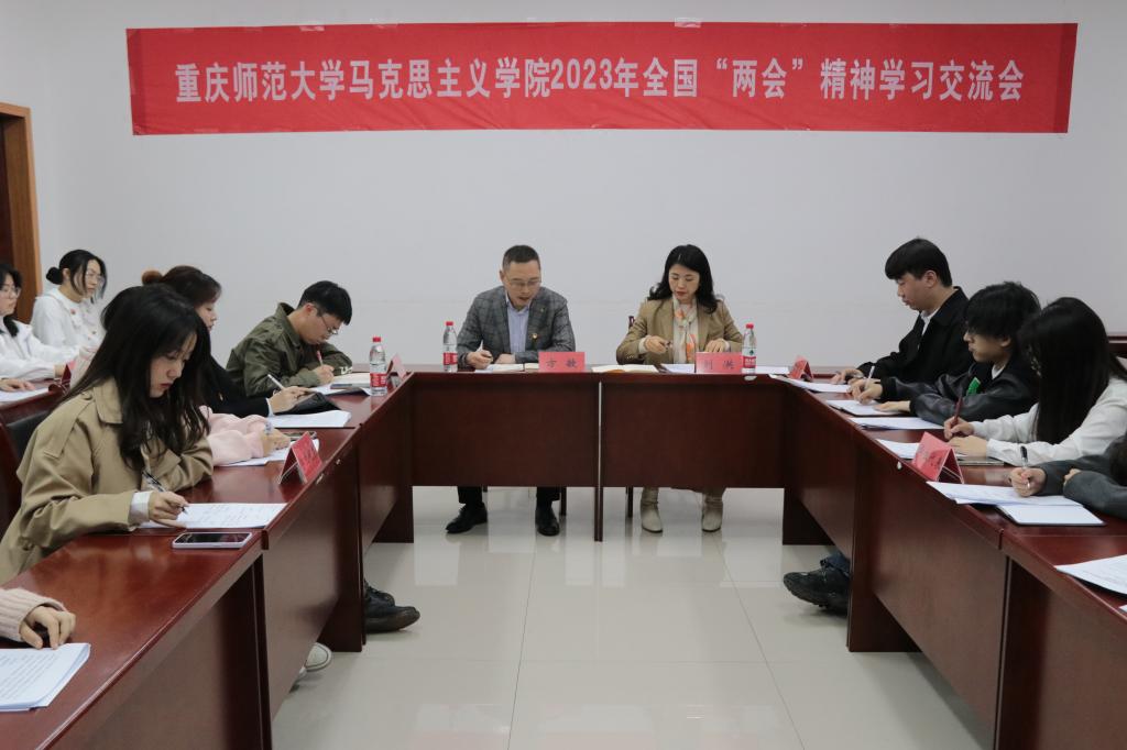 学子深入学习2023年全国两会内容,深刻理解2023年全国两会举旗定向、谋篇布局、凝心聚力的重大意义,2023年3月16日16时30分,学院于汇贤楼309教室召开2023全国两会精神学习交流会。学院党委副书记方敏、分团委书记刘洪、2021级本科生辅导员桑子豪出席本次座谈会,学生干部代表、各年级学生代表、协会代表到场认真学习。