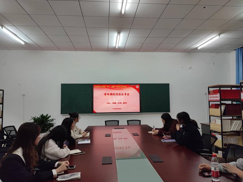研究生宋继耀、孟文静、易梦秋三位成功调剂上岸的优秀学长学姐进行经验分享,2019级有意考研调剂的同学积极参与。h小说