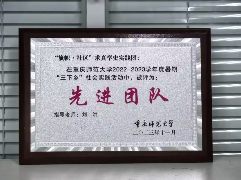 “旗帜·薪火传”——助力乡村振兴綦江实践服务团、“旗帜·社区”求真学史实践团赓续红色基因,担当青年责任,荣获“先进团队”称号。