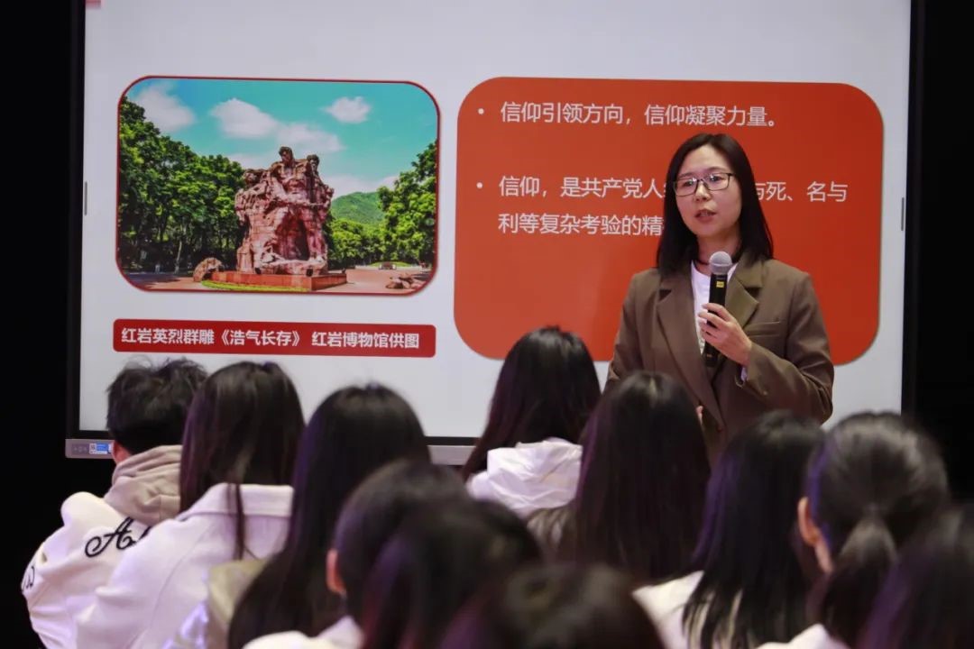 来自滨江小学、名校联合中学、南开中学的老师分别以“一只蝴蝶”“一封家书”“一种选择”为主题进行课堂展示。三位老师以“红岩精神”为课堂引领,用革命烈士的故事为主线,通过对红岩精神的内涵解释、特质分析及红岩精神在当今时代的传承和弘扬来激励当代青年要坚定理想信念,厚植爱国情怀。