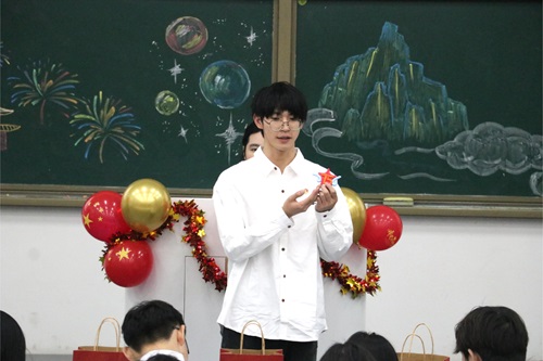 活动第五项,塑红色情怀,筑奋进之魂。支部成员用黏土制作与党、国家相关的作品,随后主持人随机抽取几位同学进行分享,他们通过展示手工作品,讲述其创作理念,以此表达对党、对国家的热爱。
