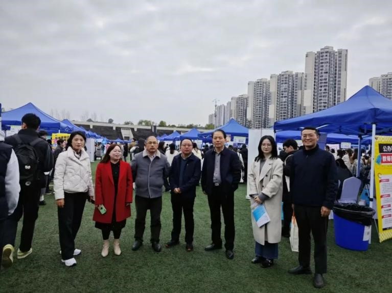 双选会期间,学院党委副书记、执行院长姜土生、党委副书记方敏、副院长侯玲与副院长田方林、教研部主任孔庆茵、教研室主任王开莉、思想政治教育系主任左秋明以及h小说