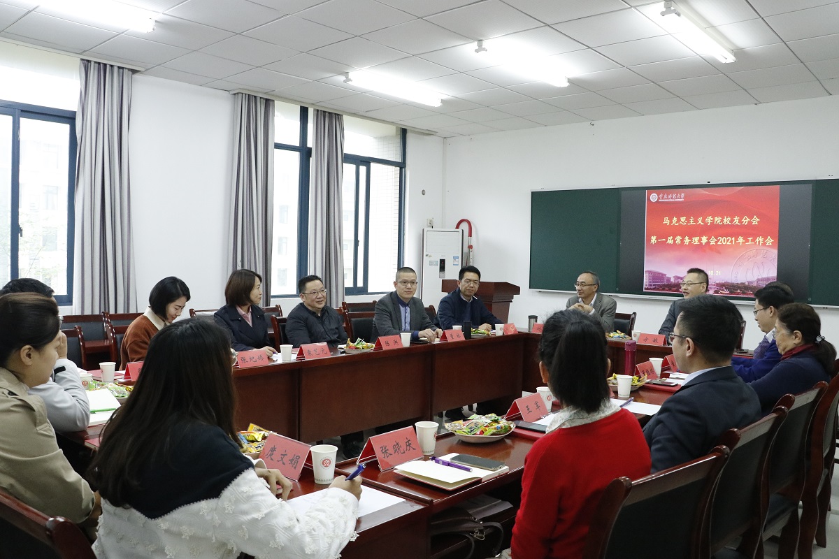 校友分会第一届常务理事会2021年工作会。会议由校友分会会长、学院党委书记刘军主持。