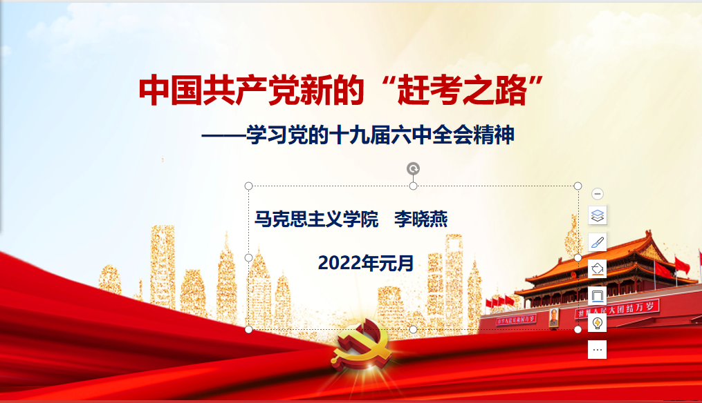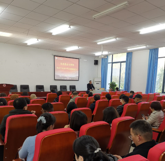 全体教职工在学院106会议室进行了集中政治理论学习。本次学习以党委书记讲微堂课方式进行,由党委书记李晓燕同志主讲党的十九届六中全会精神。