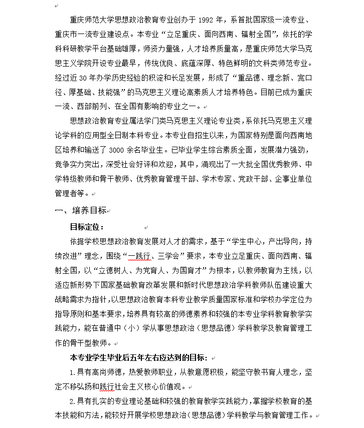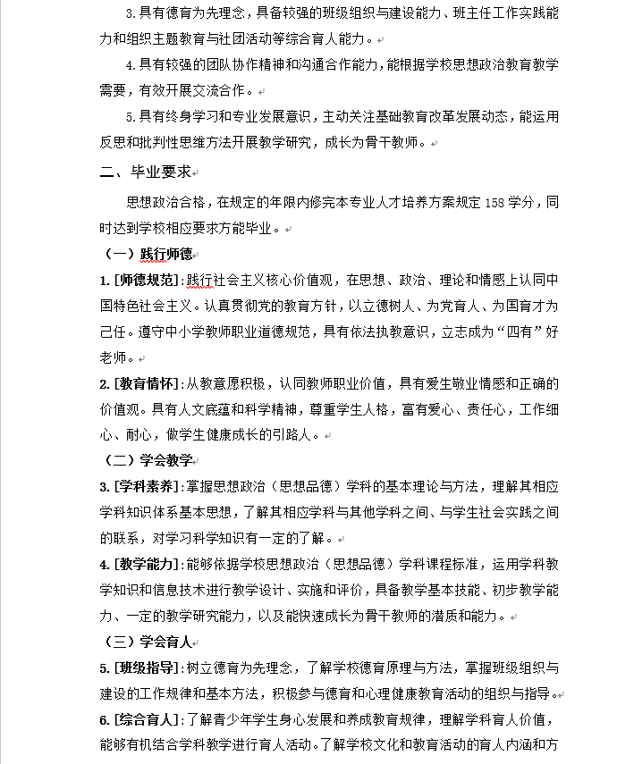 h小说 2020级思想政治教育专业(师范)本科人才培养方案