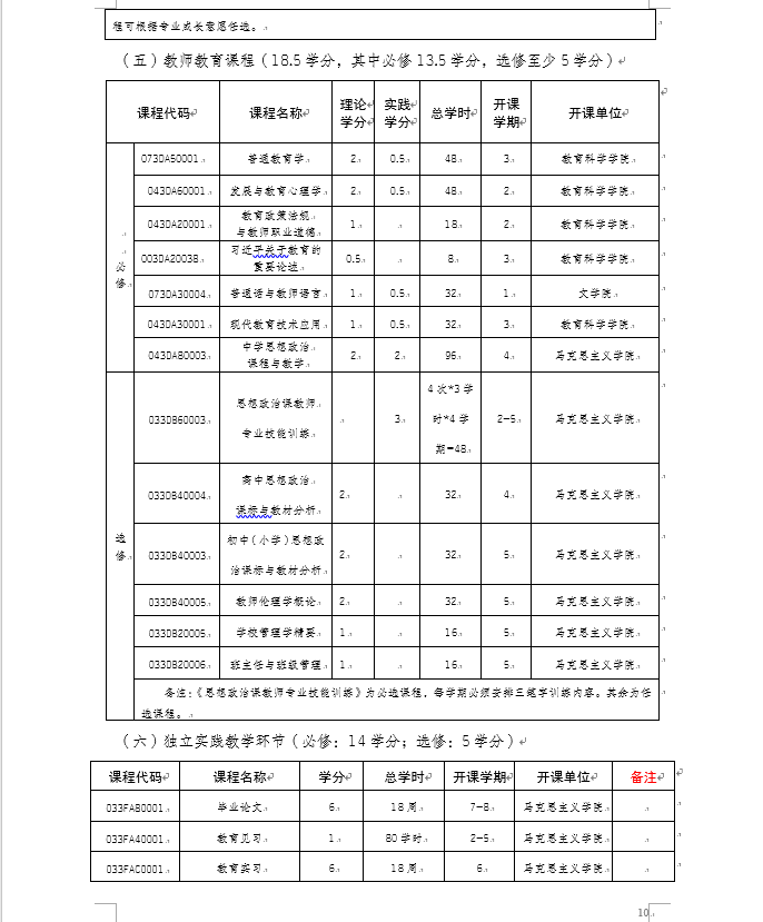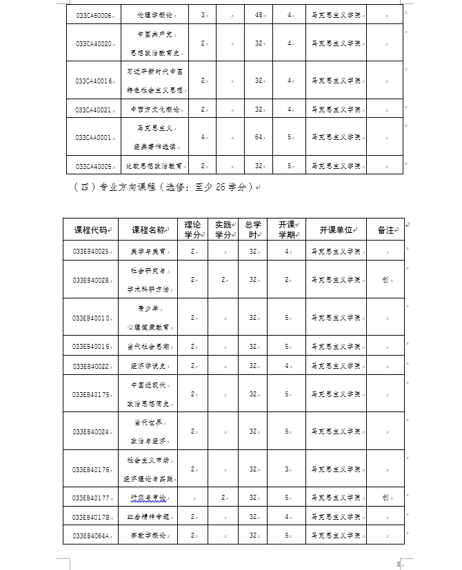 h小说 2020级思想政治教育专业(师范)本科人才培养方案