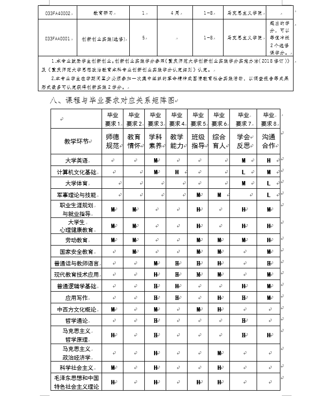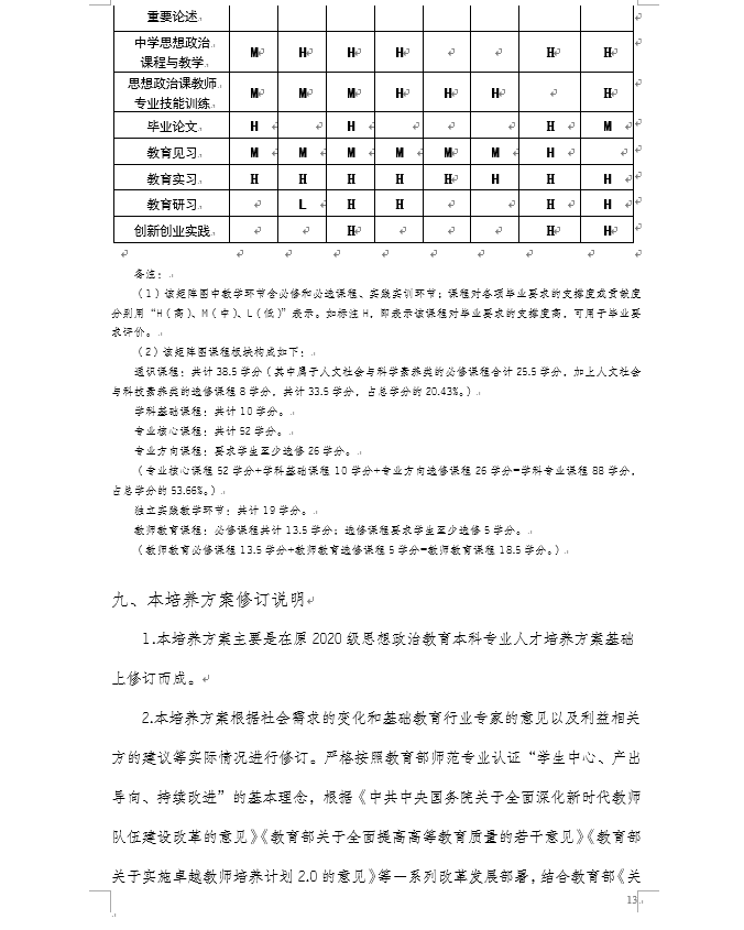 h小说 2021级思想政治教育专业(师范)本科人才培养方案
