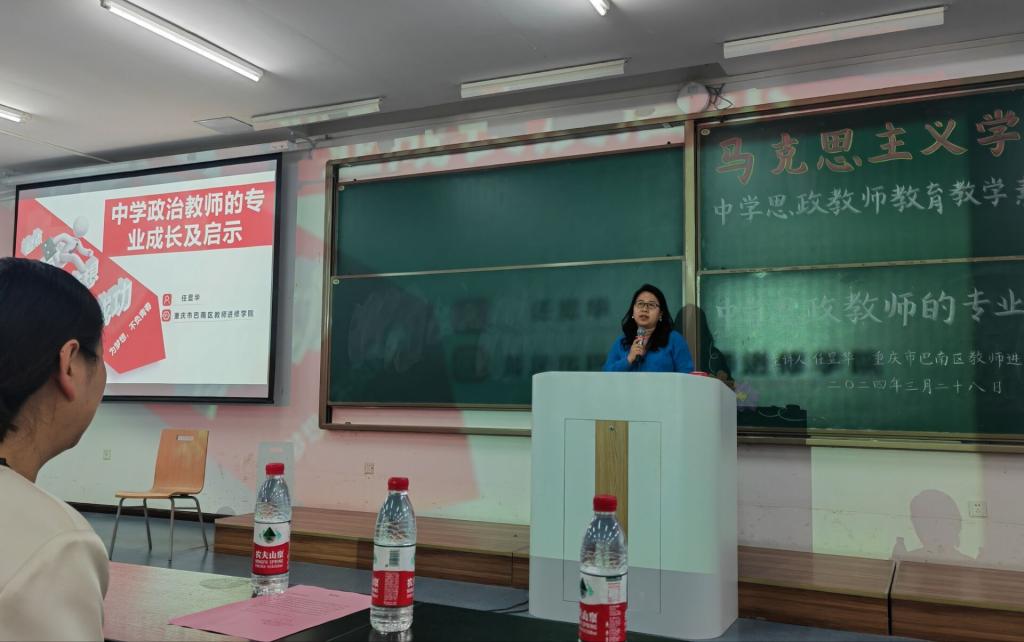 特邀重庆市巴南区教师进修学校副校长任显华老师于励志楼T2113开展“中学思政教师的专业成长及启示”讲座。本次讲座由学院副院长侯玲教授主持,学院2022级思想政治教育本科生和2023级学科教学(思政)研究生共计309位学生参加讲座。