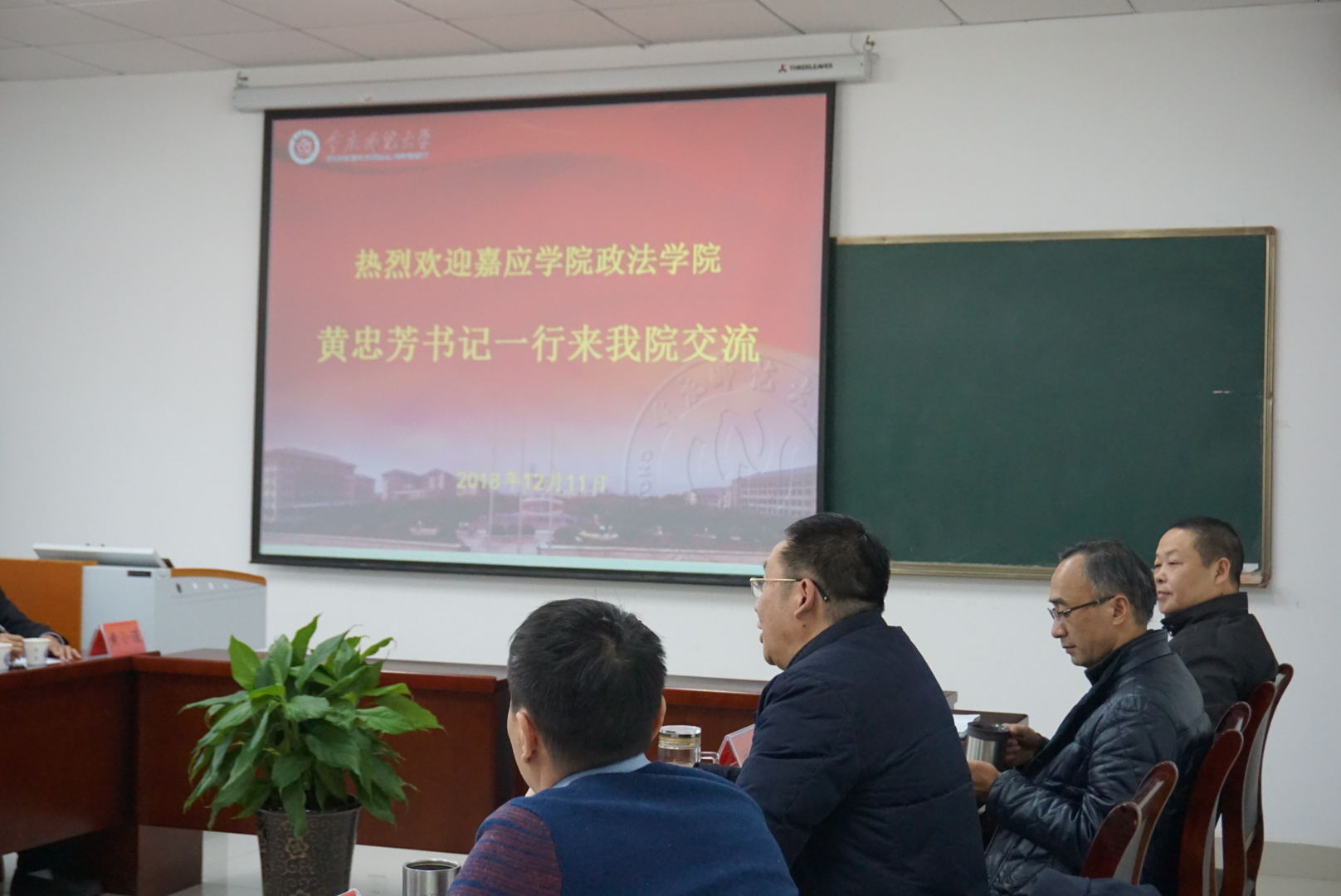 为进一步提升思想政治教育专业人才培养质量,推进马克思主义理论重点学科建设促进学院间的交流,2018年1211下午广东嘉应学院政法学院党总支书记黄忠芳携政治教研室主任张玉平、思想政治教育专业负责人郭锦杭、黄小谨一行四人h小说 开展交流。h小说 院长陈洪、党委书记刘军、副院长况明安、副书记姜土生及政教系主任祝玉峰、副主任郑瑜,教科办主任张晓庆等老师出席了交流会交流会由院长陈洪教授主持。