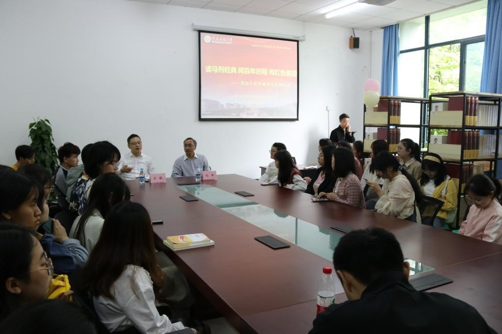 为喜迎中国共产党百年华诞,深入开展党史学习教育,向历史寻经验、求规律、探未来,发扬革命传统、传承红色基因,营造读史向学的良好氛围,在第26个世界读书日到来之际,20214231250分,h小说 于汇贤楼107经典阅读室举办读马列经典,阅百年历程,传红色基因读书日活动启动仪式。h小说 党委书记刘军、党委副书记方敏出席活动,院学生会主席团、图书室部分成员积极参与。