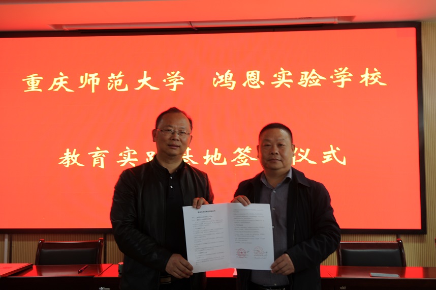 与重庆市鸿恩实验学校达成合作,签署教育实践基地协议。学院副院长况明安、思想政治教育系副主任郑瑜作为学院代表参加签字仪式。