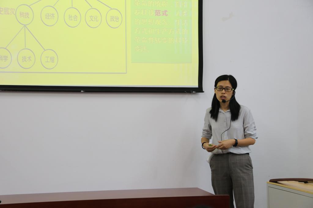 青年教师牢固扎实的理论知识和从容淡定的教学姿态。其中,杜红老师以“科学技术在社会发展中的作用”为讲课内容,简单明了地介绍课程重点,语言逻辑紧密,教学构思明确合理,与现场观众同学积极互动,气氛活跃良好;曾庆芳老师讲授的“灿烂的中国古代文明”,注重内容的深度与广度,讲授过程以清楚明晰的知识框架、简洁大方的幻灯片、生动有趣的案例,启发学生思考。