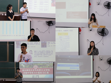 于砺志楼2402教室召开2018级思想政治教育实习总结汇报大会。学院党委书记刘军、党委副书记方敏、副院长况明安、政教系主任祝玉峰、政教系副主任郑瑜、教科办主任张晓庆及全体实习指导老师和2018级辅导员出席本次大会,2018级全体实习生参加。