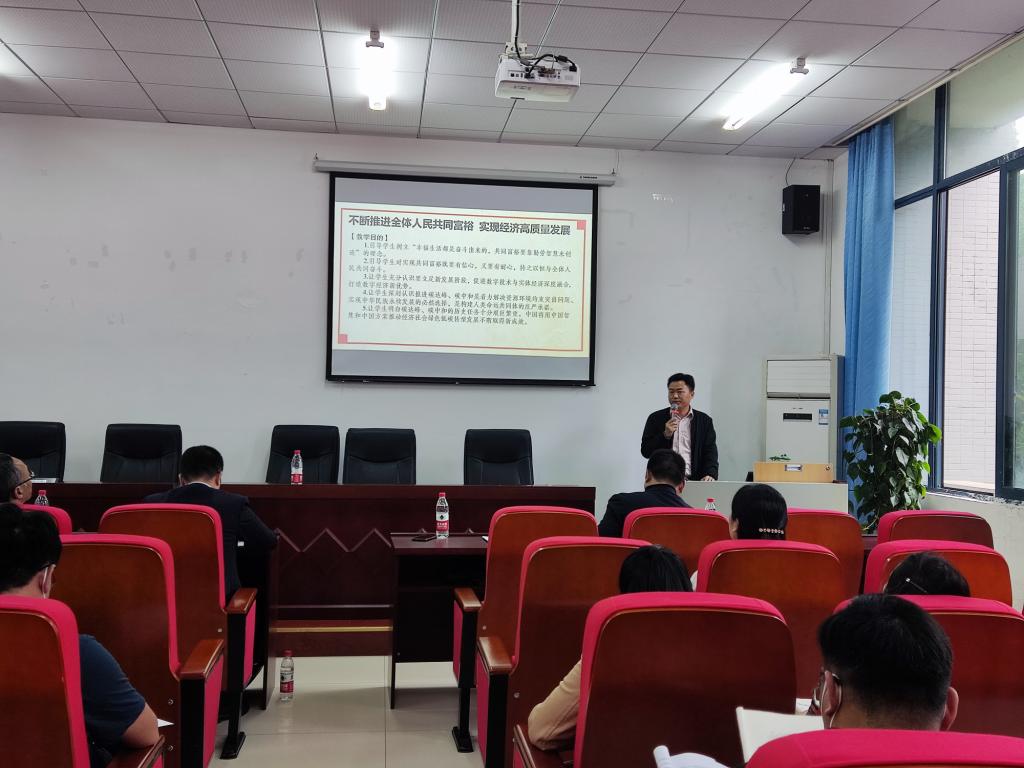 会议第二阶段,《形势与政策》课程不同版块负责人就精心准备的课件做了分享交流。首先,张敬老师围绕第一专题“不断推进全体人民共同富裕,实现经济高质量发展”,从教学目的、教学重点、教学难点三个方面进行分享交流。他提出要明确“引导学生树立共同富裕理念”“引导学生充分认识立足新阶段打造数字经济新优势”“引导学生深刻认识推进碳达峰碳中和意义”等教学目的;要讲清楚“共同富裕的科学内涵”“共同富裕的实践途径”等重点内容;要充分阐释“推动共同富裕要依靠高质量发展原因”“实现碳达峰碳中和目标重大意义”等难点问题。随后,任源钢老师重点讲解了“艰难复苏中的世界经济”第二专题。他认为,世界经济专题要注重讲清楚世界经济复苏面临的主要问题,讲清楚世界经济复苏面临的多重因素以及中国对世界经济的稳定器和动力源作用。要通过阐释当前世界经济现状,引导学生准确把握百年变局叠加世纪疫情对世界经济复苏产生的复杂影响,引导学生深刻领悟在疫情加速全球经济治理体系问题暴露的情况下,中国方案、中国韧性为抵御世界经济寒冬提供的光明与温暖。
