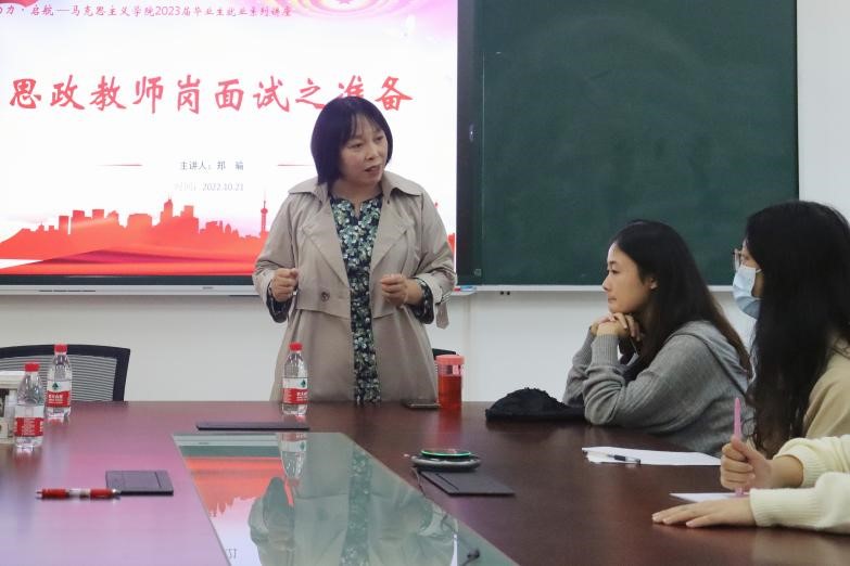 于2022年10月22日13:30在汇贤楼107会议室举行“助力·启航——2023届毕业生就业系列讲座”之思政教师岗位面试准备,讲座线上线下同步开展。此次讲座特邀h小说