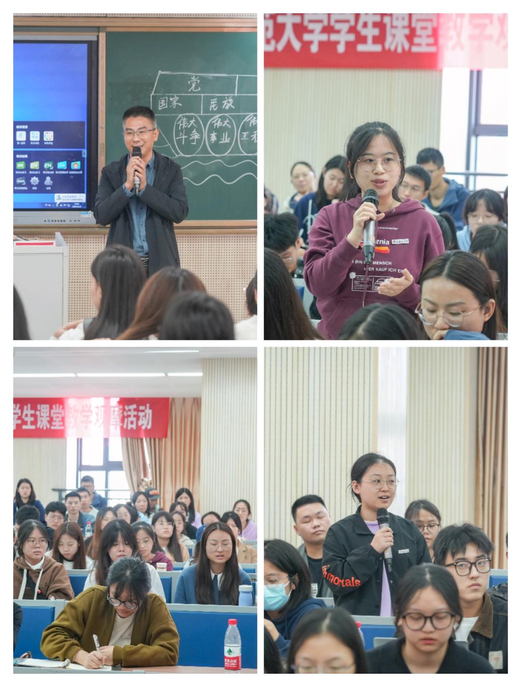 而后,两位授课老师作教学设计思路分享和教学经验分享。两位老师谈到,政治老师在教学过程当中,不能只是灌输知识,而是需要引导学生达成自然认同从而实现思想引领。